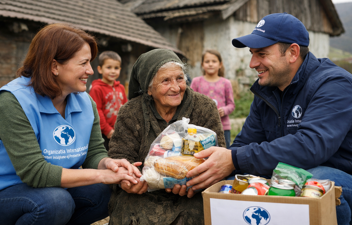 Ajutor umanitar, sprijin comunitar, intervenție de urgență.